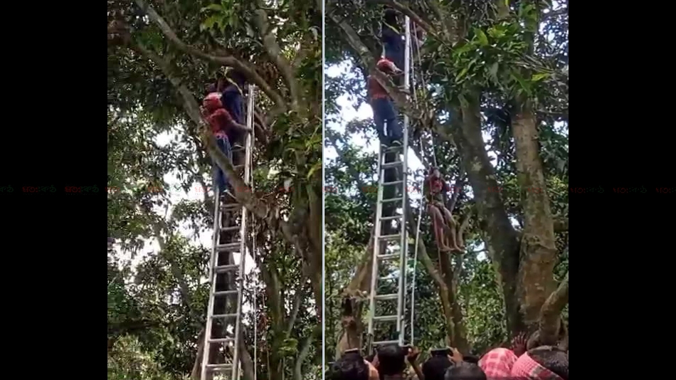পাকা আম পাড়তে গাছের মাথায় উঠে অসুস্থ হয়ে পড়ে এক যুবক, নিচে নামায় ফায়ার সার্ভিস এসে