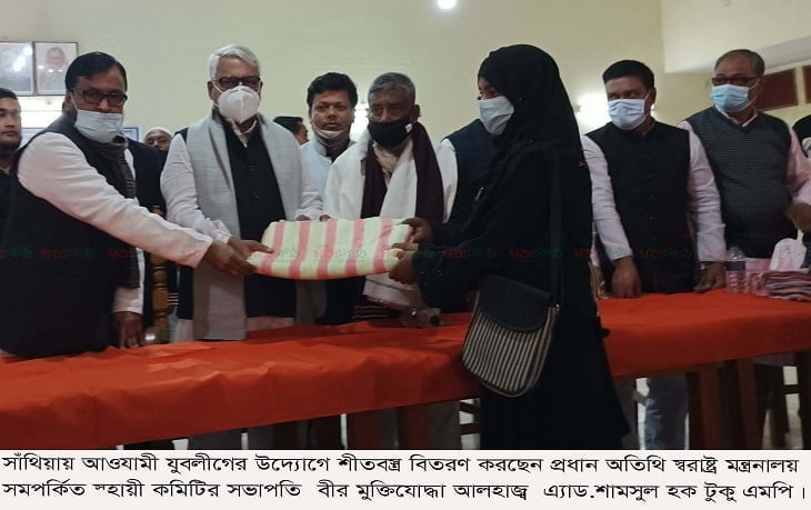 পাবনার সাঁথিয়ায় যুবলীগের উদ্যোগে শীতবস্ত্র বিতরণ