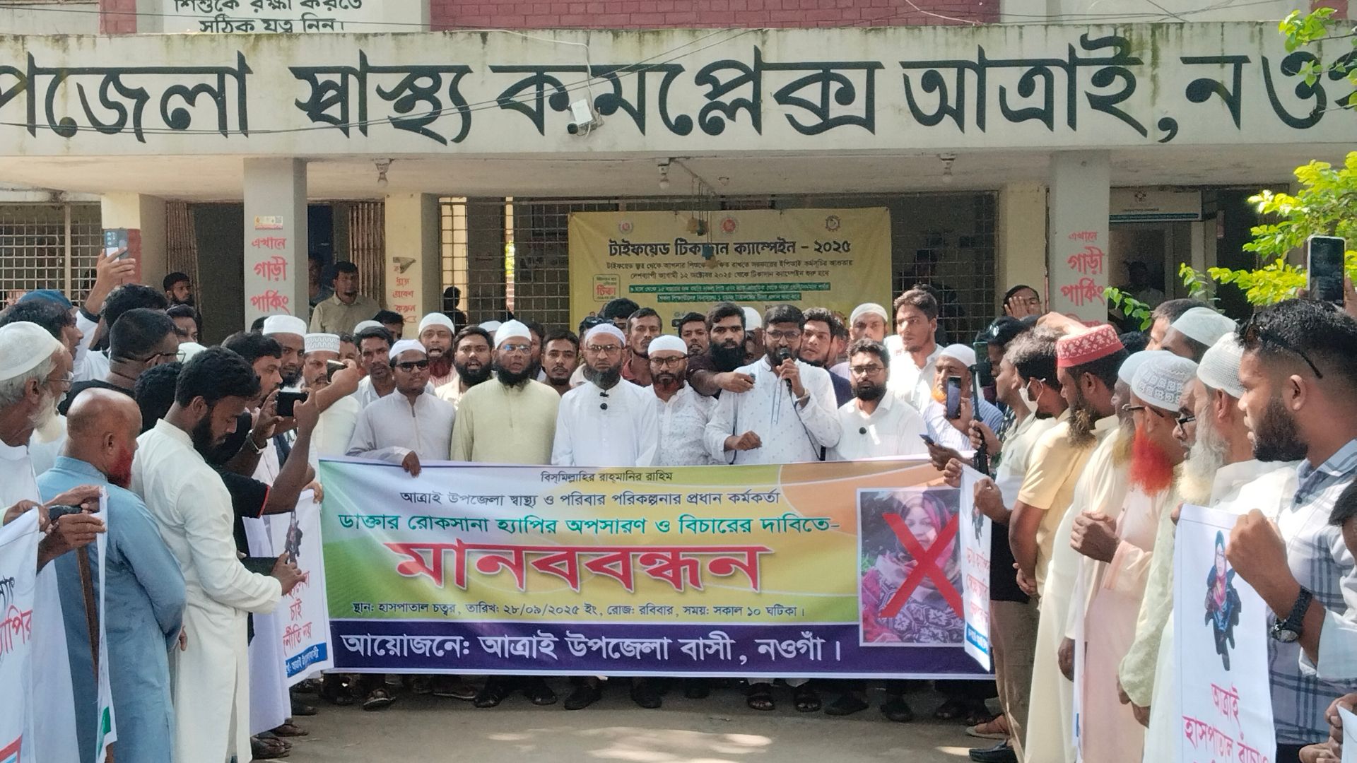 নওগাঁ জেলার আত্রাই উপজেলা স্বাস্থ্য কমপ্লেক্সে চলমান অনিয়ম ও দুর্নীতির বিরুদ্ধে এবং উপজেলা স্বাস্থ্য ও পরিবার পরিকল্পনা কর্মকর্তা ডাক্তার রোকসানা