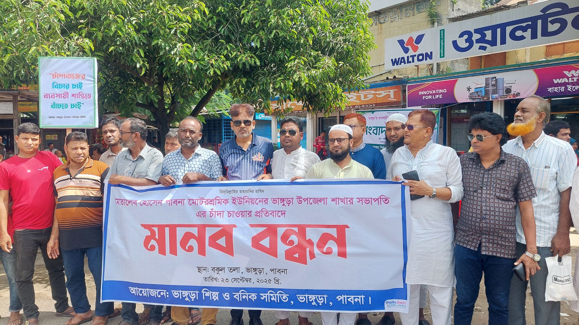 পাবনার ভাঙ্গুড়ায় পাবনা মোটর শ্রমিক ইউনিয়নের ভাঙ্গুড়া উপজেলা শাখার সভাপতি ও ভাঙ্গুড়া পৌর বিএনপি-র সাংগঠনিক সম্পাদক মোতালেব হোসেনের চাঁদা দাবীর