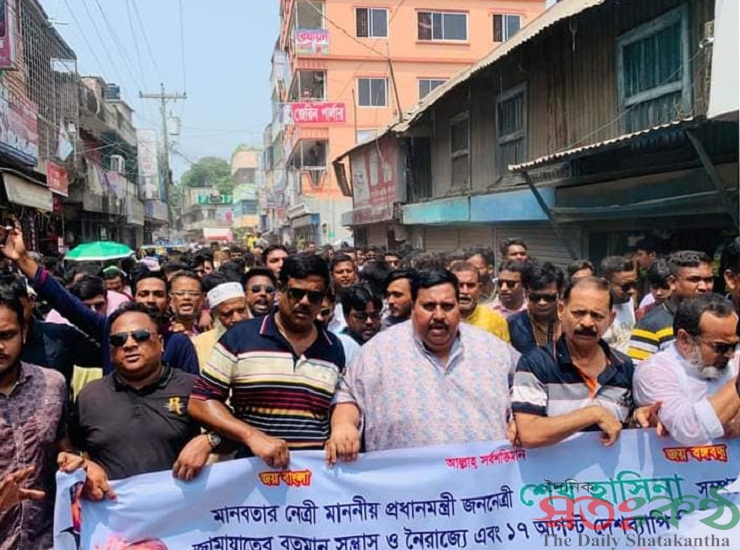 সিরাজগঞ্জের শাহজাদপুরে আওয়ামীলীগের বিশাল বিক্ষোভ মিছিল