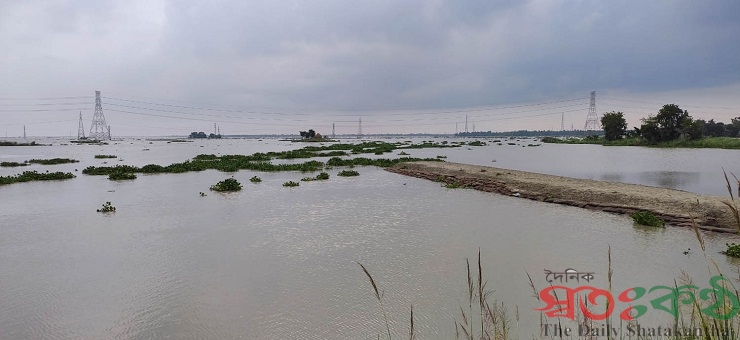 সিরাজগঞ্জের শাহজাদপুরের রাউতারা রিং বাঁধ পানির তোড়ে ভেঙ্গে গেছে