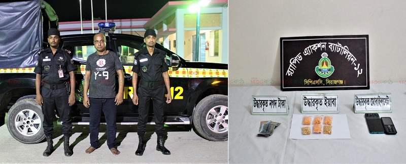 সিরাজগঞ্জে ১,৩৭০ পিচ ইয়াবাসহ ০১ জন মাদক ব্যবসায়ীকে গ্রেফতার করেছে র্যাব-১২