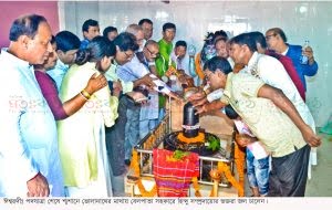 শনিবার সকাল ১১টায় শিব চতুর্দ্দশীতে হিন্দু ভক্তরা মৌবাড়ি দূর্গা মন্দির হতে পদযাত্রা করে শ্মশানের শিব মন্দিরে এসে ভোলানাথের মাথায় ফুল-বেলপাতা সহকারে জল ঢালার মাধ্যমে অনুষ্ঠানের সূচনা করেছে।