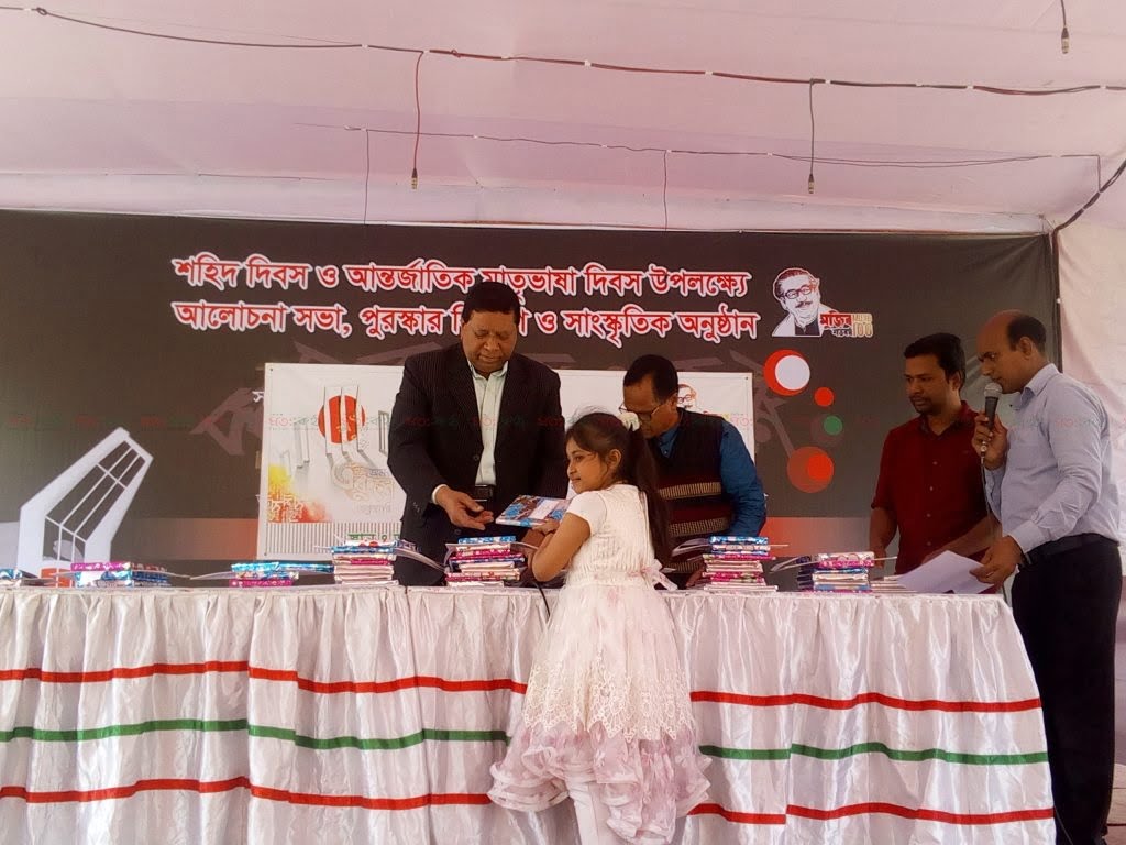 আলোচনা সভার শেষে অন্নদা গোবিন্দ পাবলিক লাইব্রেরির আয়োজনে গত ১৮ ফেব্রুয়ারি অনুষ্ঠিত বিভিন্ন প্রতিযোতায় বিজয়ী শিক্ষার্থি দের মাঝে পুরস্কার হিসেবে কিছু বই উপহার স্বরুপ তুলেদেন অন্নদা গোবিন্দ পাবলিক লাইব্রেরির মহাসচিব আব্দুল মতিন খান।