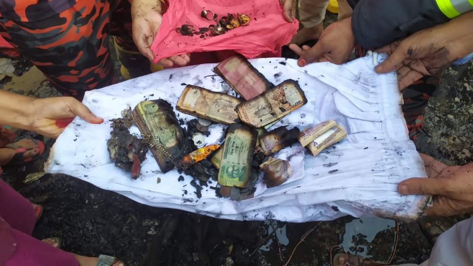 অগ্নিকাণ্ডে পুড়ে যাওয়া নগদ টাকা।