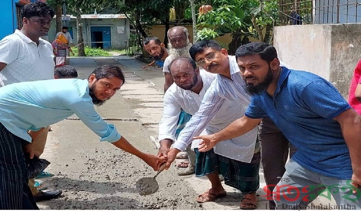 চাটখিল পৌর শহরে সমাজসেবক রুবেল ভূঁইয়া সড়কের নির্মাণ কাজের উদ্বোধন