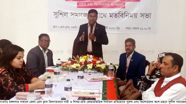 সুব্রত কিশোর হালদার, নওগাঁঃ নওগাঁয় নারী ও শিশুর প্রতি জেন্ডারভিত্তিক নির্যাতন প্রতিরোধে পুরুষ এবং কিশোরদের অংশ গ্রহনে সুশীল সমাজের প্রতিনিধিদের