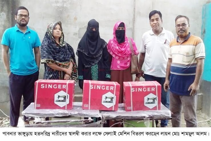 পাবনার ভাঙ্গুড়ায় হতদরিদ্র তিন নারীর মাঝে সেলাই মেশিন বিতরণ
