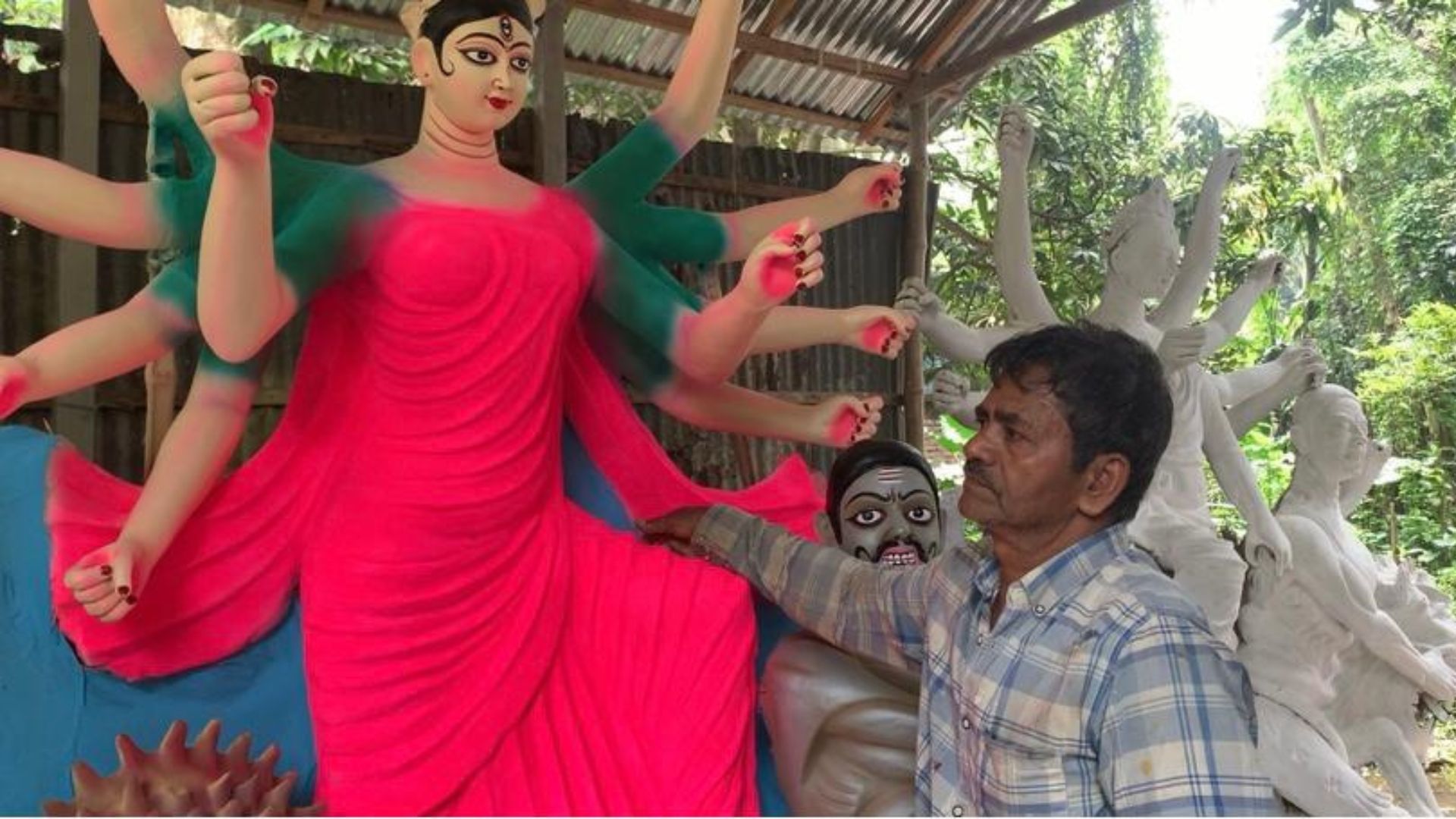 দুর্গাপূজা ঘিরে উল্লাপাড়ায় প্রতিমা তৈরির শেষ সময়ের কর্মব্যস্ততা