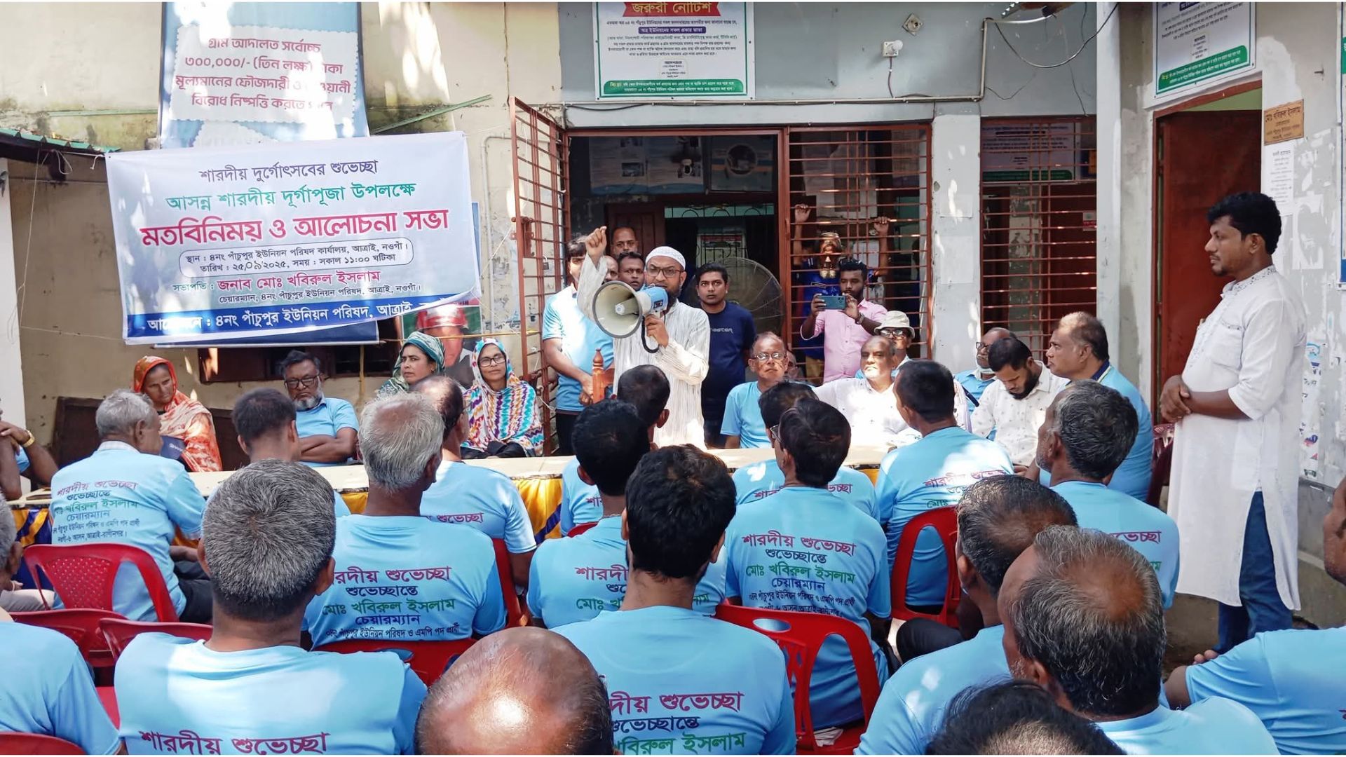 নওগাঁর আত্রাইয়ে পাঁচুপুর ইউনিয়ন পরিষদের আয়োজনে আসন্ন সারদীয় দুর্গোৎসবকে সামনে রেখে হিন্দু সম্প্রদায়ের সাথে ইউপি চেয়ারম্যানের এক শুভেচ্ছা ও মতবিনিময়