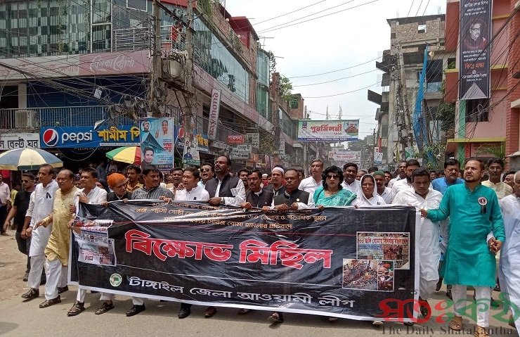 দেশব্যাপী সিরিজ বোমা হামলায় জড়িতদের ফাঁসির দাবিতে টাঙ্গাইলে বিক্ষোভ