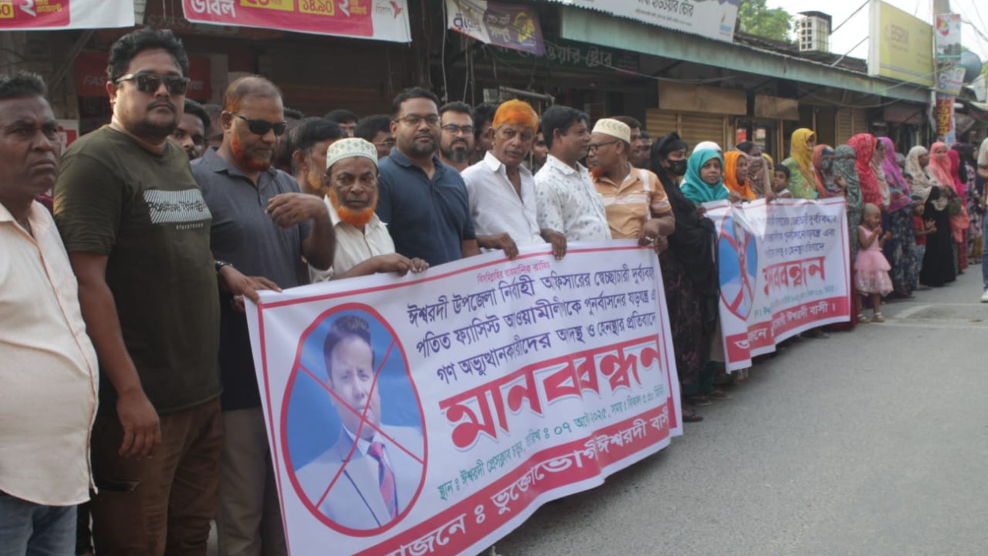 ঈশ্বরদীতে রাস্তা দখলের প্রতিবাদে মানববন্ধন
