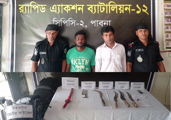 ঈশ্বরদী থেকে দেশীয় অস্ত্র ও চোরাই মোটরসাইকেল সহ দুই সন্ত্রাসীকে গ্রেফতার করেছে র্যাব