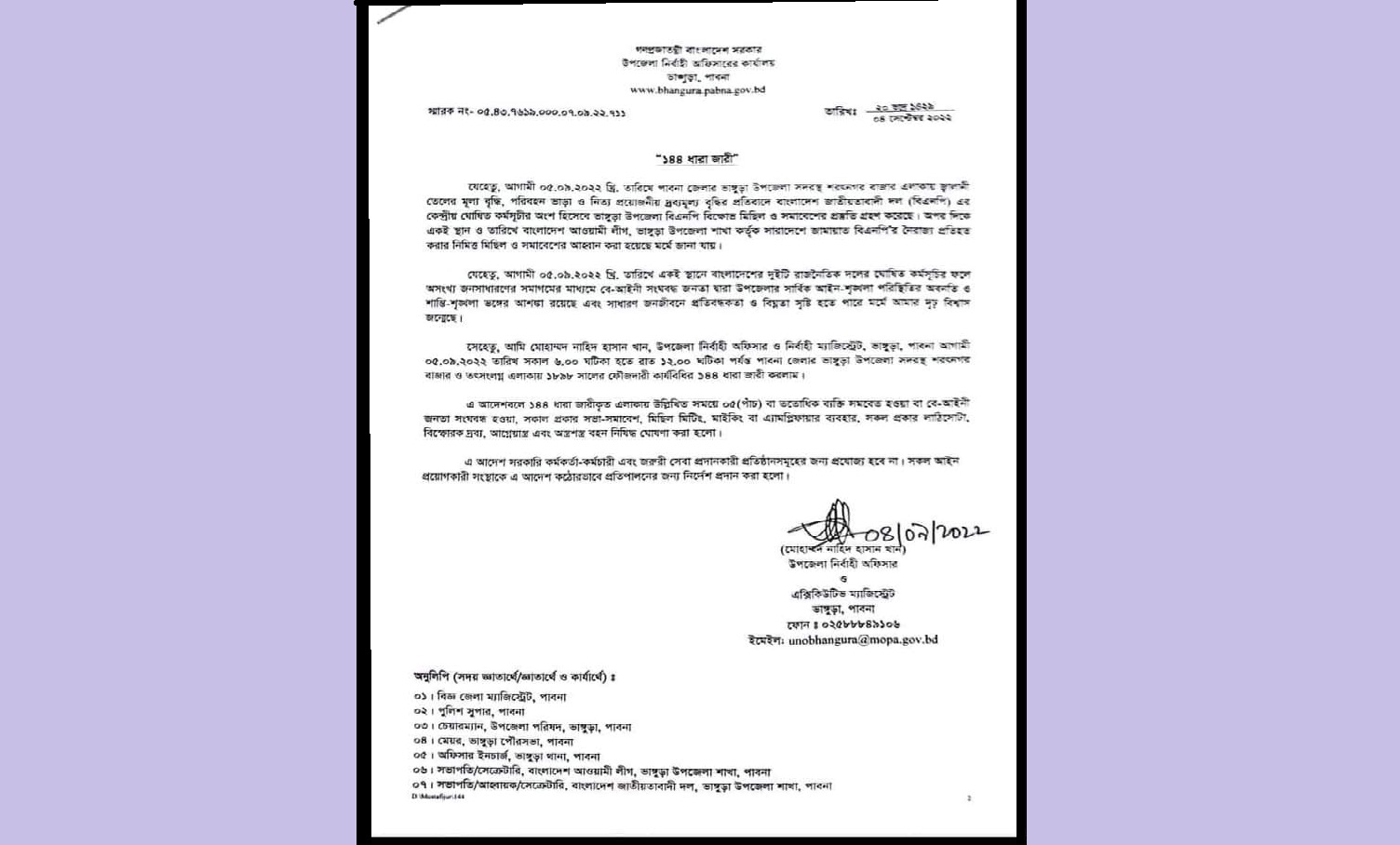 পাবনার ভাঙ্গুড়ায় আ’লীগ- বিএনপি পাল্টাপাল্টি কর্মসূচী ঘোষণা করায় ১৪৪ ধারা জারী করল স্থানীয় প্রশাসন